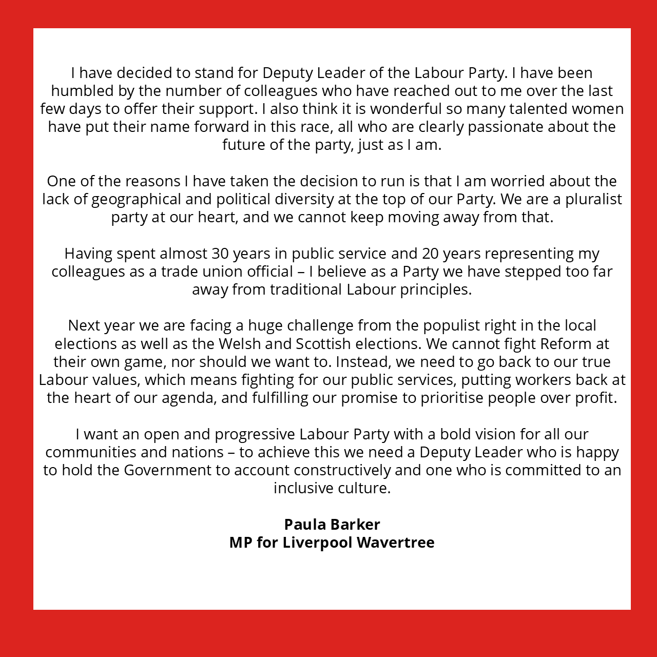 My decision to stand as Deputy Leader of the Labour Party